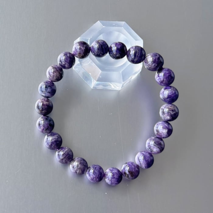 心身のエネルギーを浄化し、人徳を高める効果が期待できるチャロアイトを使用したブレスレット!心の平穏を求める方に最適です。