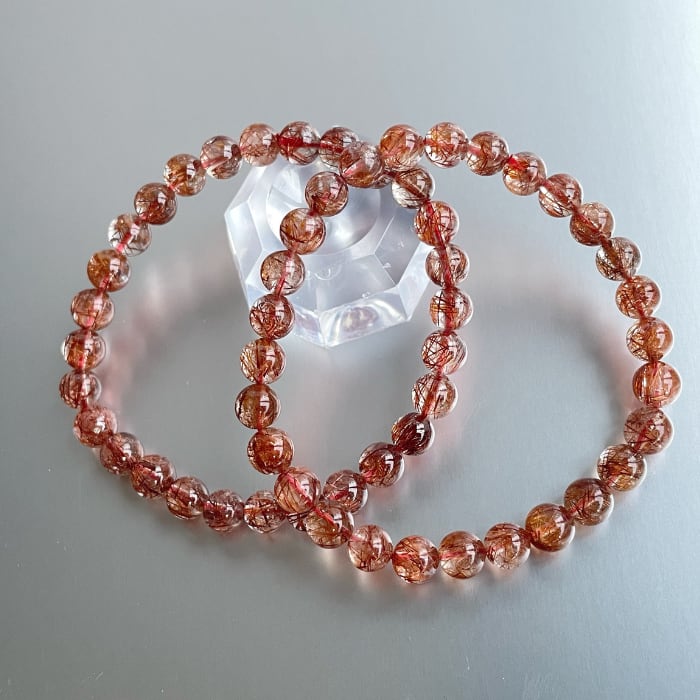 オレンジルチルは、見た目にも美しい石です。6.5mmのサイズなので、手首に程よいボリューム感を与え、華やかさとエレガンスを演出します。一見シンプルなデザインですが、リーダシップや決断力を引き立たせるパワーが秘められています。